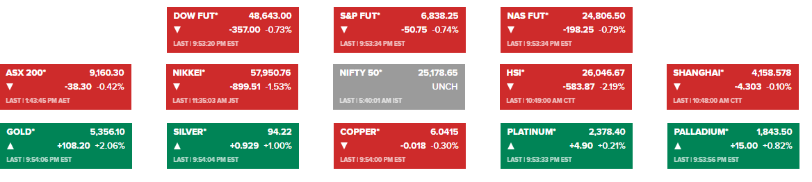 Tại châu Á, chứng khoán mất khoảng 1,3%. Hợp đồng tương lai Dow Jones có lúc giảm hơn 350 điểm trước khi thu hẹp đà rơi. Tâm lý phần nào dịu lại sau khi Tổng thống Donald Trump nói với New York Times rằng ông sẵn sàng cân nhắc dỡ bỏ trừng phạt nếu ban lãnh đạo mới của Iran thể hiện lập trường thực tế hơn. Wall Street Journal cũng đưa tin Tehran đang phát tín hiệu muốn nối lại đàm phán với Washington. Những thông tin này giúp thị trường bớt hoảng loạn, nhưng chưa đủ để đảo chiều xu hướng.